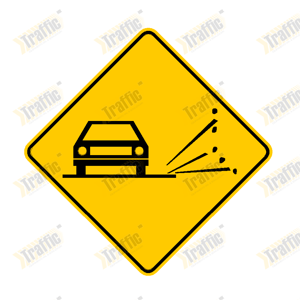 Señalamiento Preventivo 71x71cm "Grava Suelta" Mod. SP-40 con Poste