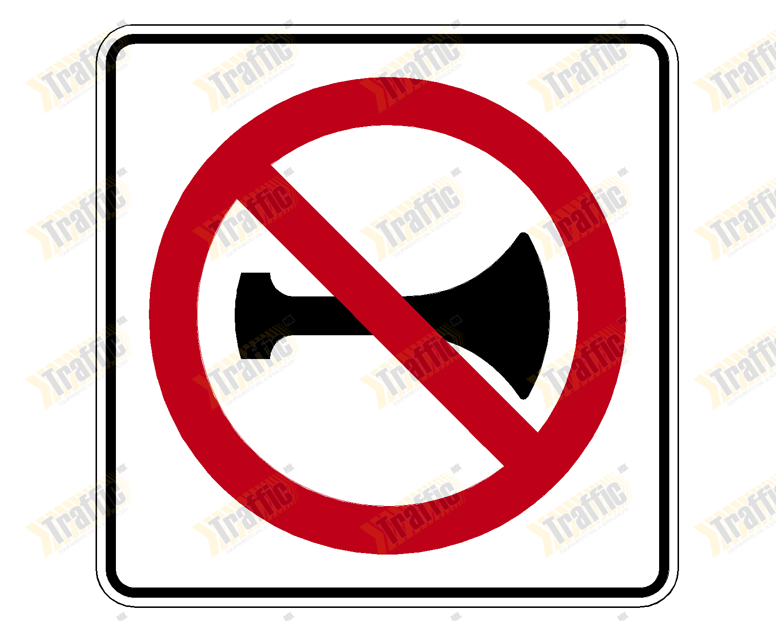 Señalamiento Restrictivo 71x71cm "Prohibido el Uso de Señalamientos Acusticos" Mod. SR-33 con Poste