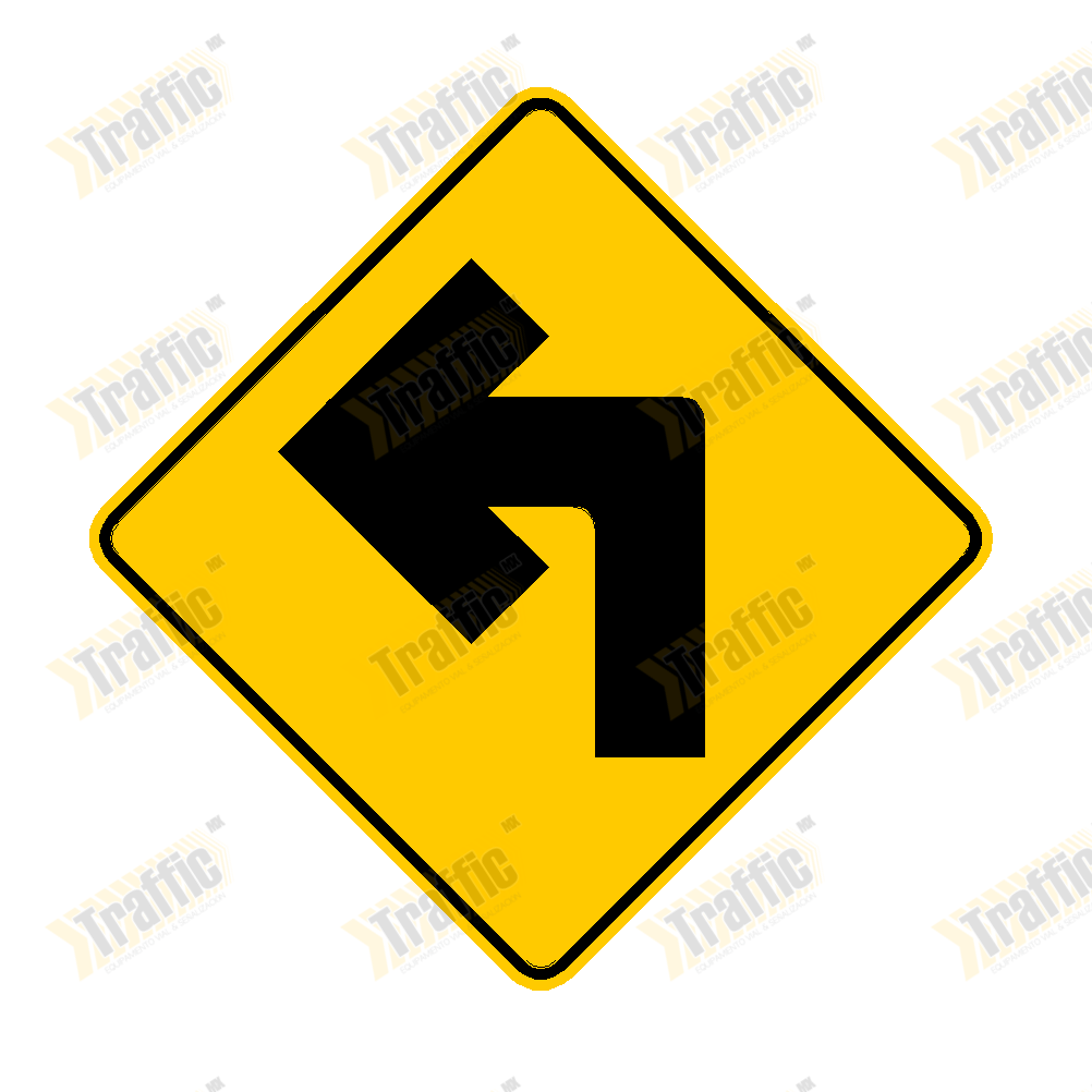 Señalamiento Preventivo 71x71cm "Curva Cerrada Izquierda" Mod. SP-7i con Poste