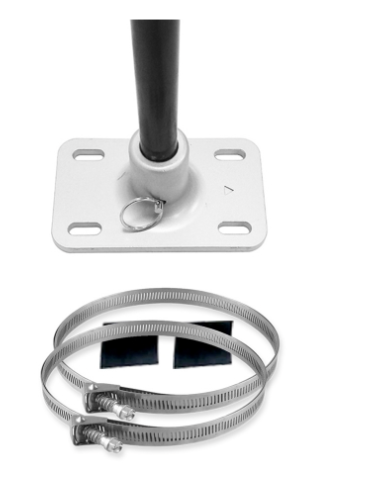 KIT PARA COLGAR BANNER EN LOS POSTES DE LUZ, QUE INCLUYE 2 TRAVESAÑOS DE ACERO CON SU BASE, 4 ABRAZADERAS