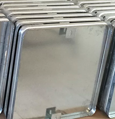 VENTA DE CHAROLAS DIFERENTES MEDIDAS Charolas con ceja troquelada de un solo impacto y orejas colocadas mediante punción mecánica. Charolas disponibles:Charola de