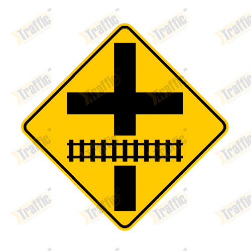 Señalamiento Preventivo 71x71cm "Intersección Vial Próxima con Vía Ferrea" Mod. SP-35A con Poste