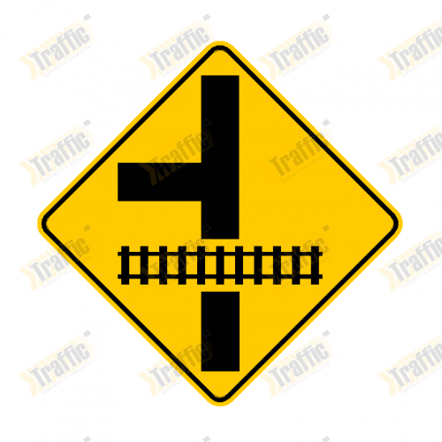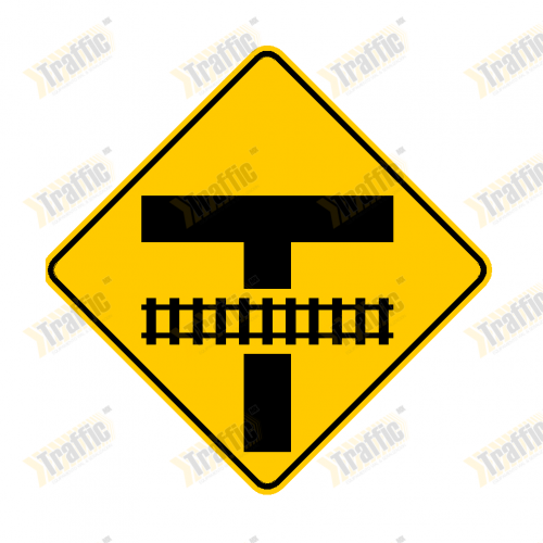 Señalamiento Preventivo 71x71cm "Intersección Vial en T Secundaria Próxima con Vía Ferrea" Mod. SP-35C con Poste